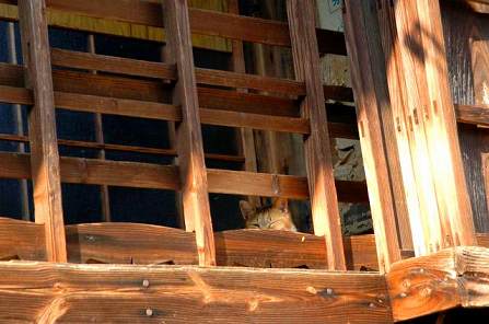 2階の縁側にいた猫。