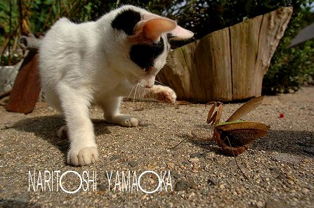猫とカマキリの